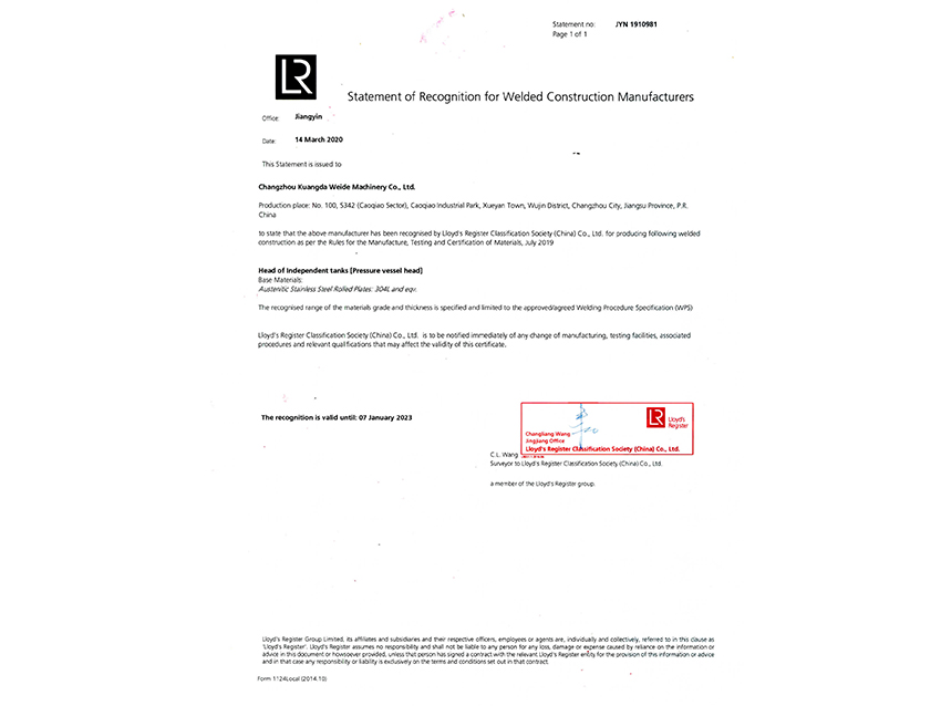 化工裝備甲級(jí)證書2024-2028 |