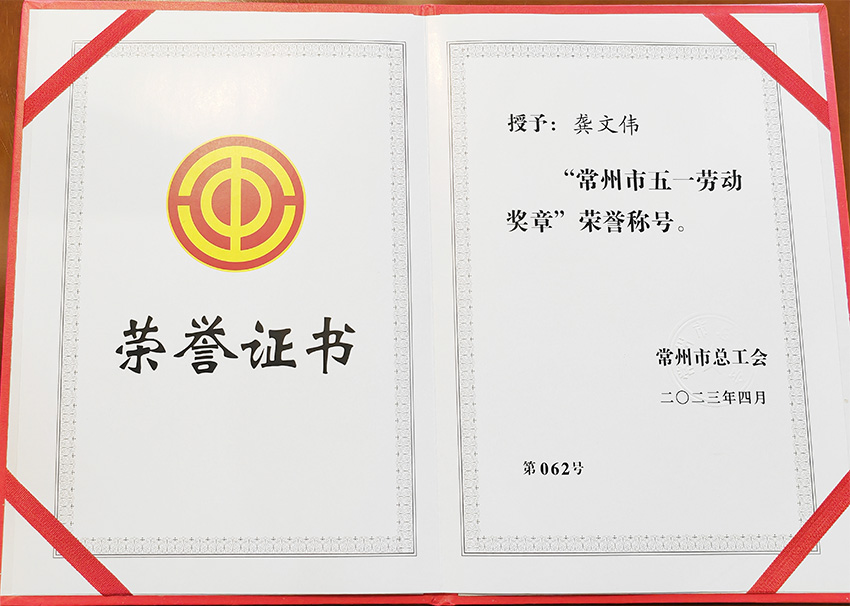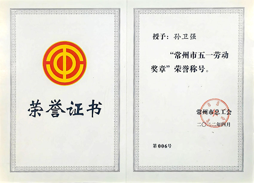 “常州市五一勞動(dòng)獎(jiǎng)?wù)隆睒s譽(yù)稱號(hào) |