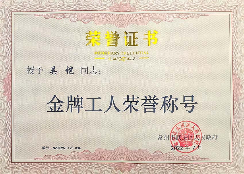 2022年金牌工人榮譽(yù)稱號(hào)榮譽(yù)證書 |