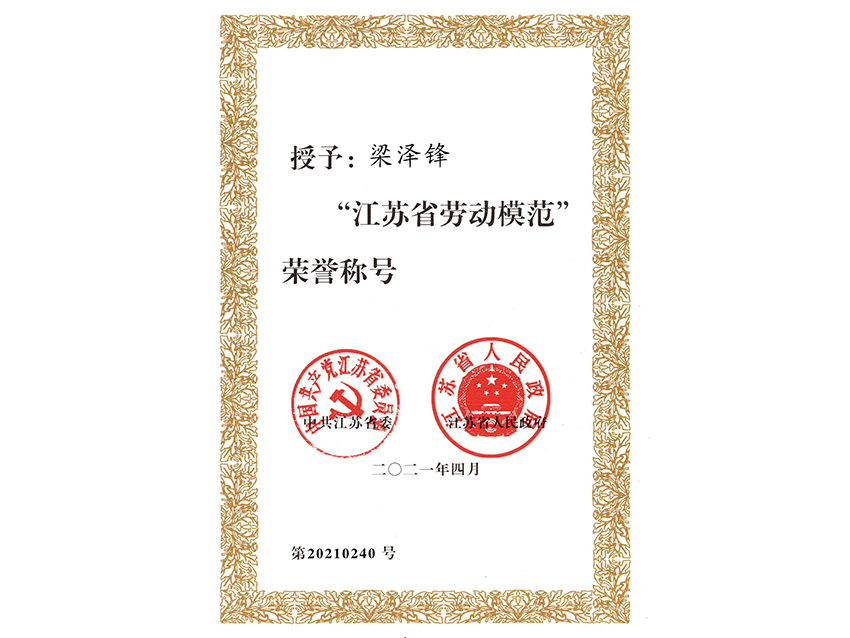 2021年江蘇省勞動(dòng)模范榮譽(yù)稱號(hào)證書 |