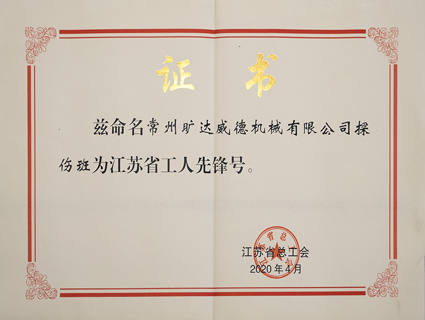 2020年江蘇省工人先鋒號(hào)榮譽(yù)證書 |
