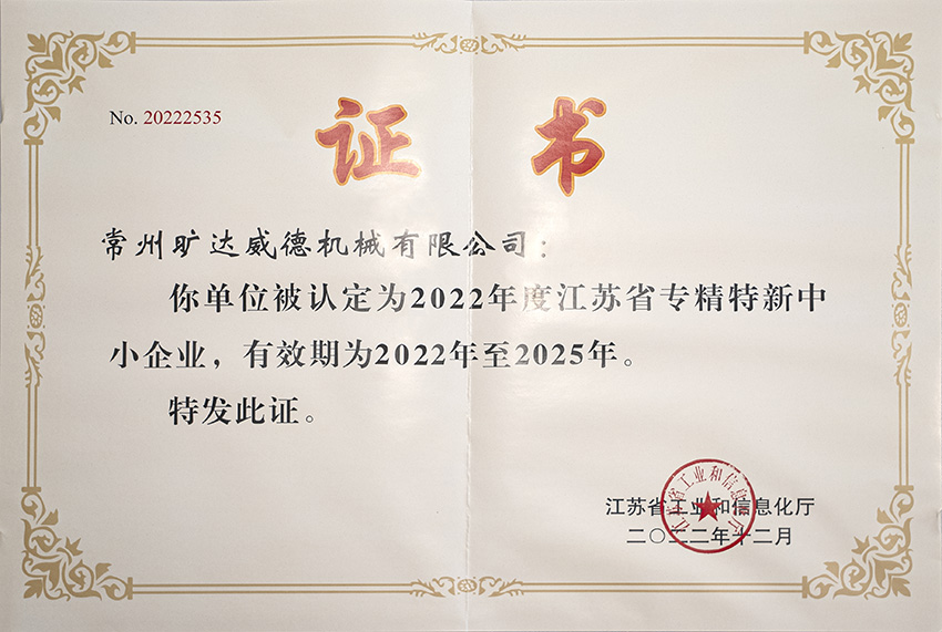 2022年江蘇省“專精特新”中小企業(yè)證書 |