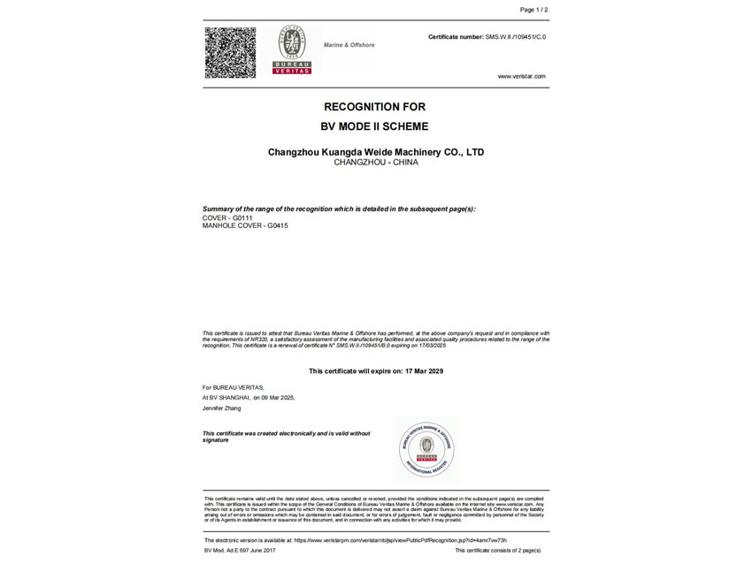 法國船級(jí)社證書(BV) |