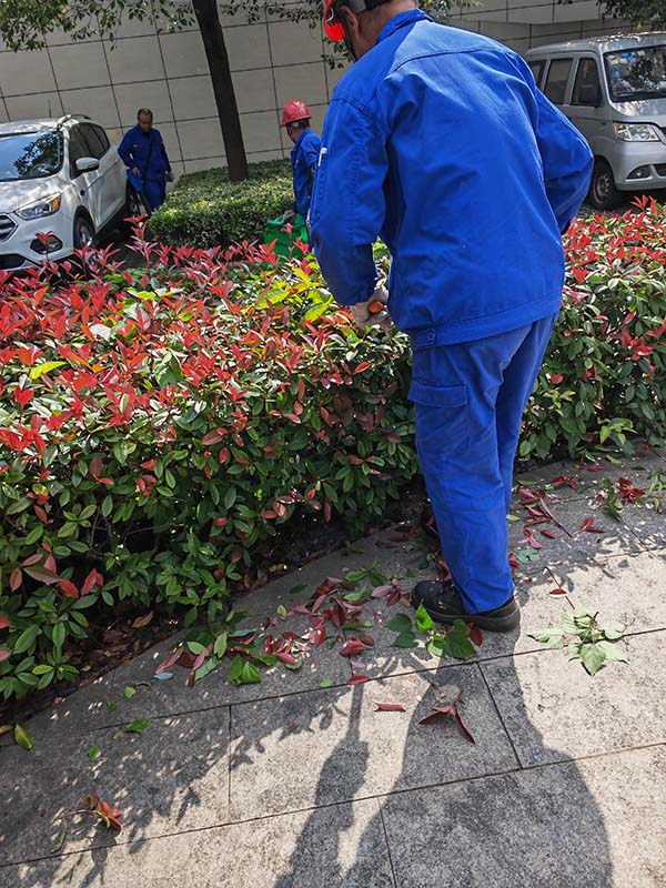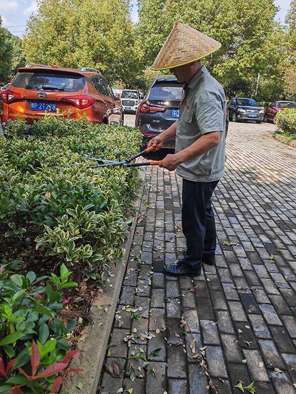 修剪綠化時(shí)大家采取了人工和簡單機(jī)械配合的方式,帶上趁手的修剪工具集合在停車場(chǎng)。簡單的分工后,大家就各就各位。有修剪工具在手的就統(tǒng)一修剪停車場(chǎng)周邊雜亂無章的樹枝;手持電動(dòng)修剪器的修理著灌木叢上突兀的高枝,雖說不是專業(yè)的,但是也盡可能的把灌木叢球面修剪的平滑齊整;沒有修剪工具的戴著手套清理著路邊的綠化帶,在樹叢的遮掩下,里面有好多的生活垃圾,少數(shù)員工上下班的時(shí)候,停好車就把早餐垃圾袋、煙蒂等順手丟在了灌木叢里。此次正好可以把這些垃圾和干枯的樹枝一起清理干凈;拿著清掃工具的立即來到剛被清理過得現(xiàn)場(chǎng),把碎葉樹枝收拾干凈。在這一來一往的配合下,2個(gè)小時(shí)就完成了綠化修剪工作。