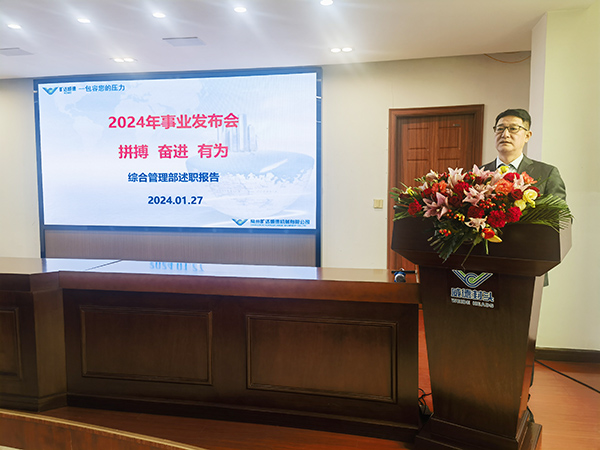 2024年1月27日,曠達(dá)威德2024年事業(yè)計劃發(fā)布會在公司會議室如期舉行。本次事業(yè)發(fā)布會共分為三項議程:部門述職、事業(yè)計劃發(fā)布及專項特大獎勵儀式。曠達(dá)威德全體干部和銷售人員參加了本次會議。 上午8:30,全體與會人員在常立寒副總經(jīng)理的帶領(lǐng)下齊聲高呼“自主創(chuàng)新、振興產(chǎn)業(yè)、貢獻(xiàn)國家、回饋社會,做中國****、最強(qiáng)的封頭專業(yè)制造商”的企業(yè)宗旨和發(fā)展目標(biāo),正式拉開了事業(yè)計劃發(fā)布會的序幕。 本次會議的第一項議程是部門述職。主持人?傊赋觯2024年已經(jīng)到來,市場的“嚴(yán)冬”還在繼續(xù),各部門在總結(jié)2023年成績的同時,重點需要直面問題、剖析原因、采取措施。隨后公司財務(wù)管理部、經(jīng)營銷售部、采購供應(yīng)部、生產(chǎn)管理部、技術(shù)開發(fā)部、質(zhì)量保障部及綜合管理部部門長分別對本部門2023年工作實績及不足進(jìn)行剖析,對工作的重點、難點及今后的改進(jìn)措施進(jìn)行具體闡述,對2024年工作目標(biāo)及計劃進(jìn)行展望。各部門領(lǐng)導(dǎo)擺數(shù)據(jù)、講事實、立目標(biāo)、謀發(fā)展,述職匯報精彩紛呈,贏得全場陣陣掌聲!
