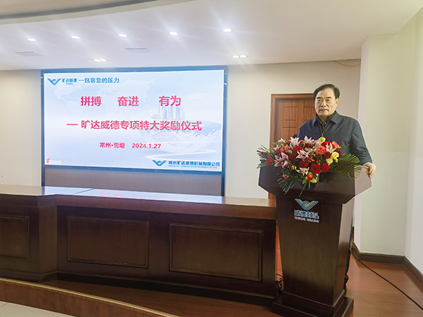 下午1點,在綜合管理部陳亮部長的主持下舉行本次會議的第二項議程——事業(yè)計劃發(fā)布。公司總經(jīng)理楊慶高首先作《2023年生產(chǎn)經(jīng)營總結(jié)與2024年事業(yè)計劃》專題報告。楊總總結(jié)了公司2023年生產(chǎn)經(jīng)營狀況,對單月銷售新高、月均產(chǎn)量新突破等驕人業(yè)績表示肯定。楊總表示,2023年多措并舉齊發(fā)力,從“成本管控”、“精細(xì)調(diào)度”、“生產(chǎn)銷售永度蜜月”到“新工藝、新技術(shù)、新裝備”,公司贏得了開業(yè)以來又一驕人戰(zhàn)績!爸挥凶霾怀墒碌娜,沒有人做不成的事”,楊總對各部門提出了2024年的新課題,并要求各部門真抓實干、勇于創(chuàng)新,鼓勵大家“雖然外部環(huán)境風(fēng)雪交加,但是內(nèi)部依然熱火朝天,狠練內(nèi)功才能綻放耀眼光彩!”。 接著,副總經(jīng)理龔文偉作了《在合規(guī)中追求高質(zhì)量發(fā)展》的主題報告。龔總表示,在常州邁上萬億俱樂部的開局之年,公司要抓住機(jī)遇迎接一切挑戰(zhàn)。龔總從深化主題教育、擴(kuò)大品牌榮譽(yù)、辦好職工學(xué)堂、打造幸福企業(yè)和致力合規(guī)管理五個方面全面總結(jié)了2023年取得的成績、剖析了目前還存在的問題,并指明了2024年努力的方向。龔總指出2024年機(jī)遇與挑戰(zhàn)必然并存,威德人唯有勇于開拓、不斷奮斗、繼續(xù)精進(jìn),做到“眼前有方向、心中有陽光、腳下有力量”,才能拼搏新征程,奮進(jìn)向未來,有為建新功! 隨后,副總經(jīng)理常立寒發(fā)表了題為《細(xì)節(jié)決定成敗、用心鑄就品質(zhì)》的報告。報告從交貨合格率、客戶投訴、工作合格率、生產(chǎn)合格率、焊接一次合格率、膠片利用率、交檢合格率、不符合品、質(zhì)量損失、顧客滿意度等方面對2023年的指標(biāo)完成情況進(jìn)行了闡述和分析,并特別列舉了公司目前存在的一些問題,通過實際的工作照片,舉例說明了在質(zhì)量控制過程中做好細(xì)節(jié)的重要性。常總指出千里之堤潰于蟻穴,2024年還需要加強(qiáng)體系文件的修訂、加強(qiáng)標(biāo)準(zhǔn)的學(xué)習(xí)和培訓(xùn)、加強(qiáng)供應(yīng)商管理,確保ASME、A3等體系的換證成功。最后,?偤粲醮蠹易龊媒裉斓馁|(zhì)量、贏得明天的市場! 下午4點,總經(jīng)理楊慶高宣讀了專項特大獎勵文件,開啟了會議的第三項議程——專項特大獎勵發(fā)放。曠達(dá)集團(tuán)沈介良董事長及曠達(dá)威德曹立宏董事長為本次獲獎的干部和員工頒發(fā)特大獎勵(新能源轎車),將會議氣氛推向了高潮。沈董在隨后的講話中提出了三點希望,他希望2024年曠達(dá)威德人要保持危機(jī)感,形勢不容樂觀;希望曠達(dá)威德的團(tuán)隊要更加注重傾聽員工的聲音;同時還希望曠達(dá)威德的團(tuán)隊要時刻警醒自己、保持高度的自覺性,最后沈董祝愿曠達(dá)威德在2024年龍年騰飛、再創(chuàng)輝煌!