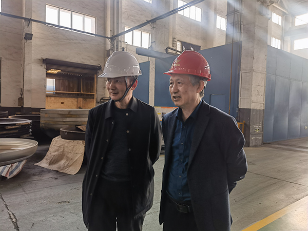 公司董事長(zhǎng)曹立宏、總經(jīng)理?xiàng)顟c高、副總龔文偉、常立寒、綜合管理部部長(zhǎng)陳亮熱情接待了來賓。在創(chuàng)新成果展示廳,公司近幾年創(chuàng)新發(fā)展路徑、取得的創(chuàng)新成果、技術(shù)攻關(guān)項(xiàng)目、不同規(guī)格的產(chǎn)品等等一一呈現(xiàn)在眼前,讓人眼前一亮。接下來大家轉(zhuǎn)移陣地來到車間一線進(jìn)行參觀,一進(jìn)3號(hào)車間,映入眼簾的就是龐然大物般的萬噸壓機(jī)。大家感興趣的在操作臺(tái)邊看著員工的操作,趁著空閑詢問相關(guān)產(chǎn)品的技術(shù)參數(shù)和制作工藝。一路漸進(jìn),見證著封頭的完整生產(chǎn)工藝流程,每一個(gè)細(xì)節(jié)每一個(gè)工序都影響著最終產(chǎn)品品質(zhì),各協(xié)會(huì)分會(huì)主任委員三兩成群,或者圍作一團(tuán),就某個(gè)工序的工藝技術(shù)進(jìn)行熱烈探討。結(jié)束車間參觀后,大家來到公司黨群服務(wù)工作室交流座談。曹董首先介紹了公司的發(fā)展現(xiàn)狀及未來規(guī)劃,大家看著工作室滿墻的榮譽(yù)獎(jiǎng)牌,都肯定了公司的經(jīng)營發(fā)展成績(jī)。協(xié)會(huì)執(zhí)行副理事長(zhǎng)張金說現(xiàn)在的曠達(dá)威德和他曾經(jīng)來見識(shí)的威德已經(jīng)有了質(zhì)的變化,不管是生產(chǎn)管理、企業(yè)文化建設(shè)還是引進(jìn)先進(jìn)設(shè)備,都已成為行業(yè)翹楚。張副理事長(zhǎng)還對(duì)企業(yè)未來的規(guī)劃發(fā)展給出了中肯的建議,他說到近幾年的鍛造、沖壓和鈑金制作行業(yè)發(fā)展面臨“雙碳”挑戰(zhàn)和應(yīng)對(duì)壓力,公司必須重視碳達(dá)峰和碳中和工作,做好能源管控;必須準(zhǔn)確理解和把握數(shù)字化、自動(dòng)化、信息化概念,必須重新認(rèn)識(shí)裝備和生產(chǎn)線,利用先進(jìn)的智能設(shè)備和數(shù)控技術(shù)來改善生產(chǎn)工藝,但是需要認(rèn)真研究投入條件,避免盲目投資造成浪費(fèi);規(guī)劃好企業(yè)智改數(shù)轉(zhuǎn)藍(lán)圖,立足實(shí)際需求,從企業(yè)最痛處、最關(guān)注的地方入手進(jìn)行數(shù)字化轉(zhuǎn)型設(shè)計(jì)和改造,達(dá)到立竿見影、高度契合的目的。