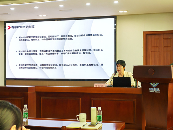 新增產(chǎn)改試點單位代表一行先后參觀了江蘇洛凱機電股份有限公司的職工活動陣地、黨建文化展廳;常州曠達威德機械有限公司的創(chuàng)新成果展覽廳、梁澤鋒勞模創(chuàng)新工作室、黨群服務(wù)工作室等陣地文化。在曠達威德的職工學(xué)堂,區(qū)總工會副主席朱宏英主持了此次現(xiàn)場觀摩會議。會議中大家聽取了洛凱機電工會主席黃華介紹的職工思想引領(lǐng)、產(chǎn)業(yè)工人技術(shù)創(chuàng)新及洛凱學(xué)院建設(shè)的經(jīng)驗;學(xué)習(xí)了曠達威德工會主席龔文偉分享的產(chǎn)改工作機制建設(shè)、技能評定與匠心文化、技術(shù)創(chuàng)新路徑及民主管理方式拓深等產(chǎn)業(yè)工人培育的特色亮點。市總工會產(chǎn)改辦朱赤老師圍繞有組織領(lǐng)導(dǎo)機構(gòu)、有產(chǎn)改實施方案、有年度任務(wù)清單、有思想引領(lǐng)舉措、有技能提升體系、有維權(quán)服務(wù)制度這“六有”,給新增產(chǎn)改試點單位代表進行了“企業(yè)產(chǎn)改六有工作法”的專項產(chǎn)改業(yè)務(wù)培訓(xùn)。觀摩培訓(xùn)期間,與會人員對曠達威德的產(chǎn)改工作推行情況和成效都表示了肯定和贊賞,并表示會根據(jù)各自公司的實際情況,結(jié)合學(xué)到的可行的產(chǎn)改措施,化為己用,讓自己的產(chǎn)改工作也可以少走彎路。朱宏英主席最后總結(jié)發(fā)言,她希望各新增產(chǎn)改試點單位代表通過此次培訓(xùn),可以明確產(chǎn)改工作的意義和方向。把準(zhǔn)大方向,做好小細節(jié),讓廣大產(chǎn)業(yè)工人臉上有笑容、心里有目標(biāo)、腳下有活力、生活有奔頭,讓更多產(chǎn)業(yè)工人可以實現(xiàn)由工到匠的轉(zhuǎn)變。