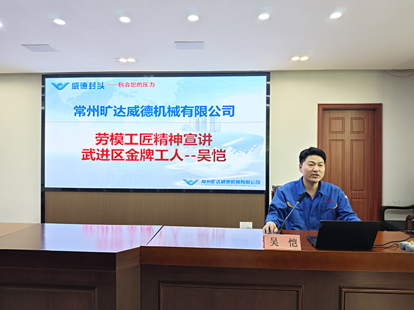 培訓(xùn)伊始,新譽(yù)集團(tuán)的江蘇省勞模嚴(yán)成給全體一線員工帶來(lái)了“勞模工匠”精神宣講,讓大家深刻感受到了勞模、工匠們的卓越追求與奉獻(xiàn)精神。緊接著,曠達(dá)威德的省勞模梁澤鋒也上臺(tái)進(jìn)行了分享,他的經(jīng)歷和感悟激勵(lì)著每一位在場(chǎng)員工。隨后,武進(jìn)金牌工人吳愷也分享了自己的成長(zhǎng)歷程與心得,展現(xiàn)了金牌工人的風(fēng)采與擔(dān)當(dāng)。