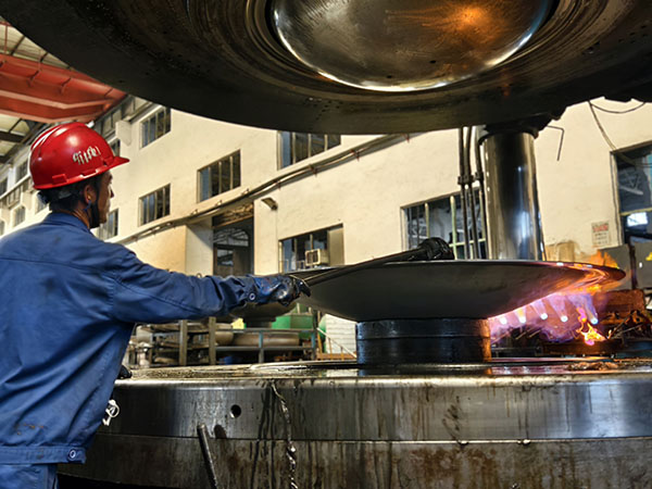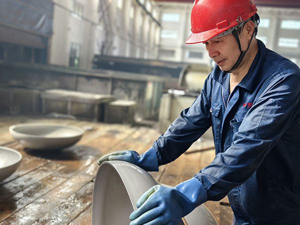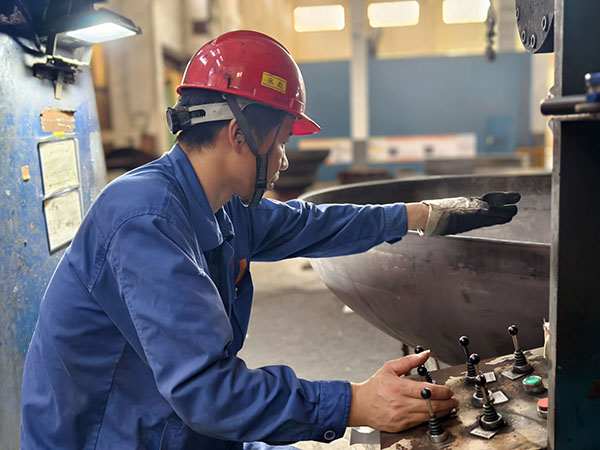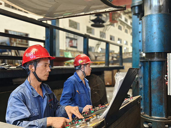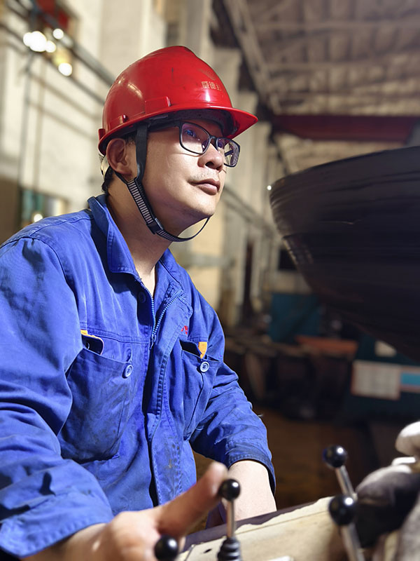 均衡施壓 精準成形 他們找對模具,把鋼板放置在相應(yīng)的位置,緊盯操作臺,按下一個個像“音符”一樣的操作鍵,猶如技藝高超的“演奏師”,他們就是成形工序的沖壓師傅們?此麄兒?jié)褚律溃止っ鞔_,不一會兒,一個產(chǎn)品就成形了。他們自檢內(nèi)在質(zhì)量和外表面的質(zhì)量,測量板厚的減薄情況、周長或直徑的數(shù)據(jù),外表面有無鼓包、皺折、凹坑等。他們的精準制作,對后續(xù)的交期提供了有力保障。再來看看我們的旋壓工序,省勞模梁澤鋒正在旋壓操作,他時而盯著“音符”,時而看著隨機旋轉(zhuǎn)的產(chǎn)品,雙手不停的轉(zhuǎn)換,真的就像在彈奏著一手優(yōu)美的曲子。他在旋壓操作的時候,是如此的輕松和愜意,沒有一絲的慌亂,真正做到了專心、專業(yè)、專注。他旋出來的產(chǎn)品基本是免檢的,內(nèi)在質(zhì)量和外在質(zhì)量堪稱“完美”,將“匠心所指 精益求精”發(fā)揮到極致。另一臺旋壓機上正在操作的是張彪,他主攻熱旋壓,是個“多面手”,熱旋壓不忙時,就在冷旋壓等工序幫忙。他也嫻熟的彈奏著“音符”,對于內(nèi)在或外在質(zhì)量也都做到了心中有數(shù)。要想成為“演奏師”,得經(jīng)過多年的打磨,做到勤勤懇懇為工,兢兢業(yè)業(yè)為匠。