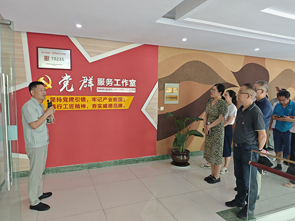 活動第二個議程,由曠達(dá)威德龔文偉副書記邀請常州分院各位同志參觀了公司創(chuàng)新成果展示廳、“紅心威德”黨群服務(wù)工作室。龔書記現(xiàn)場介紹了公司的產(chǎn)品創(chuàng)新成果、員工服務(wù)以及“紅心威德”黨建品牌的創(chuàng)建工作?偨(jīng)理助理吳亦平還帶領(lǐng)大家參觀了車間現(xiàn)場。