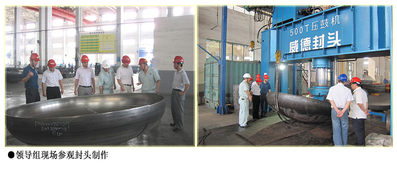 7月28日下午,以張家港特檢院何華副院長為首的一行7人和以常州特檢院毛小虎副院長為首的一行5人,就封頭監(jiān)檢工作冒著炎日酷暑來到我公司考察、調(diào)研。