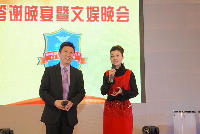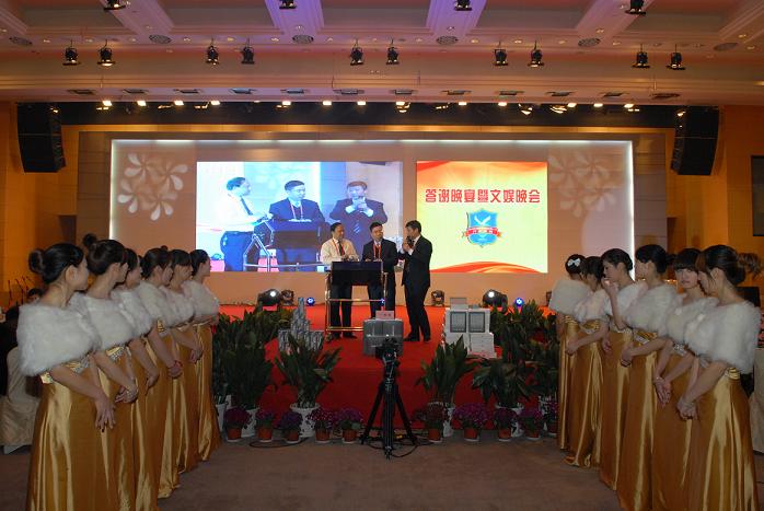 答謝晚宴由央視著名主持陳偉鴻先生和常州電視臺舒昶小姐共同主持。首先,王健總經(jīng)理宣布晚宴開始;接著,錢鳳明董事長親自登上舞臺向廣大來賓致祝酒詞。