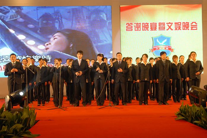文娛晚會期間陳偉鴻先生與公司部分領(lǐng)導和客戶代表進行了現(xiàn)場版《對話》節(jié)目,同時,周艷泓,邰正宵,高勝美等著名明星獻歌獻藝。晚會現(xiàn)場氣氛高潮迭起,此起彼伏,其中,公司員工自發(fā)組織的小合唱《相親相愛》一度將晚會帶到了最高潮。