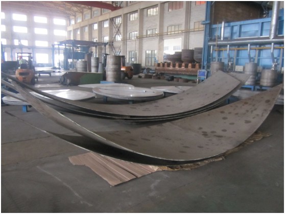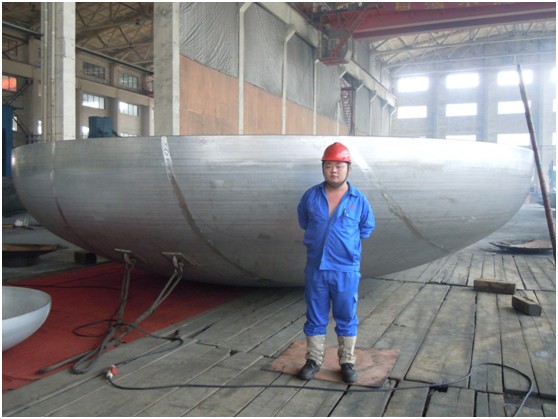 緊接著,各部門齊心協(xié)力,克服了制作過程中的種種困難,對每一分片做了精確的下料,并連夜趕制特殊的焊接工裝,以驚人的速度完成了條狀分片的壓制,用精湛的手工焊技術(shù)拼接成半成品,最后至十米旋壓機直接旋壓成型。期間,每一道工序,無一不體現(xiàn)出我公司雄厚的技術(shù)力量以及團隊合作精神。